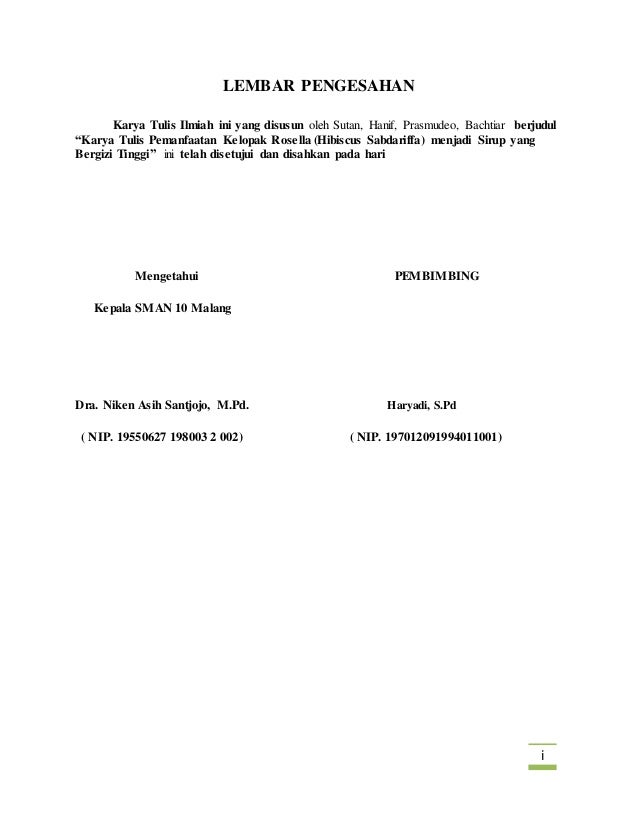Contoh Lembar Pengesahan Karya Tulis Study Tour